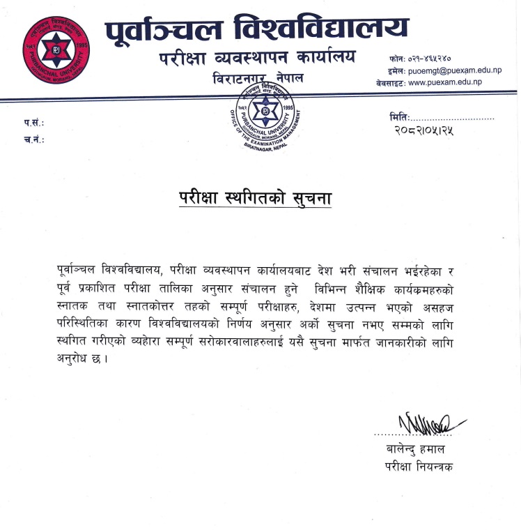 Faculty of Medical Sciencesपरीक्षा स्थगनसम्बन्धी जरूरी सूचना