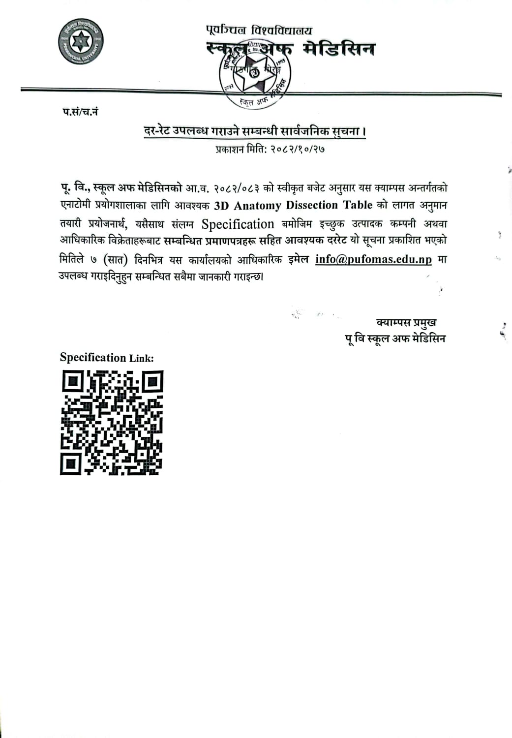 Faculty of Medical Sciencesदररेट उपलब्ध गराउने सम्बन्धी सार्वजनिक सूचना